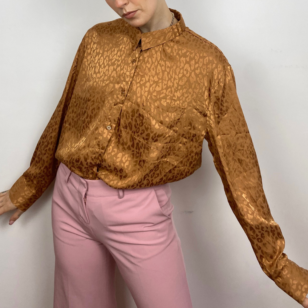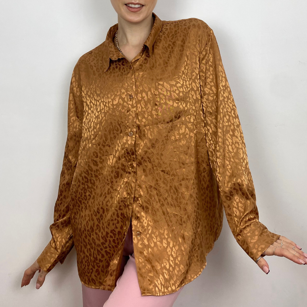 Leopard Print Satin Blouse - SMALL