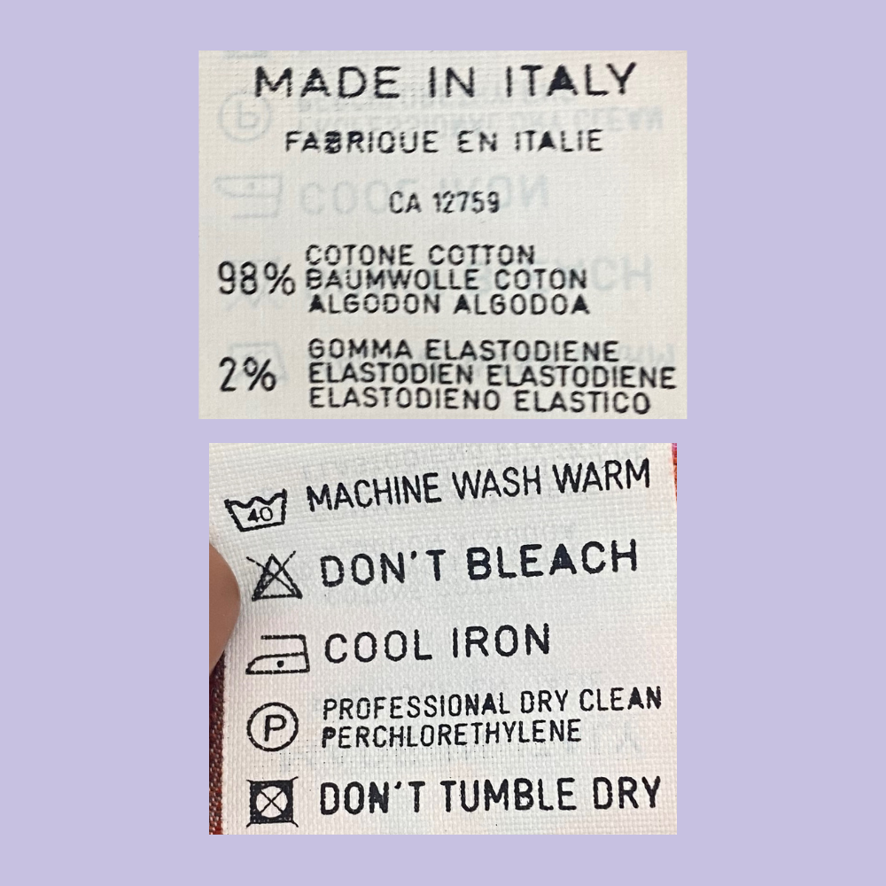 - Care label pictured