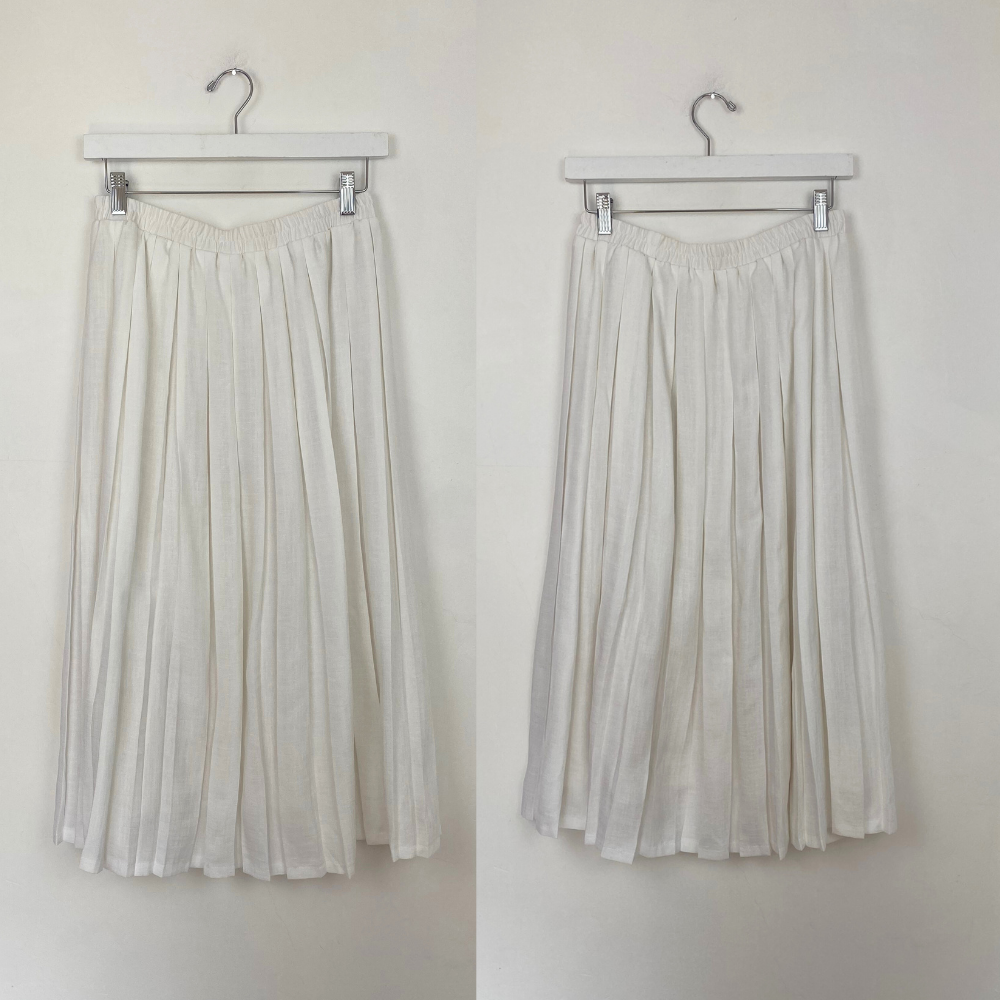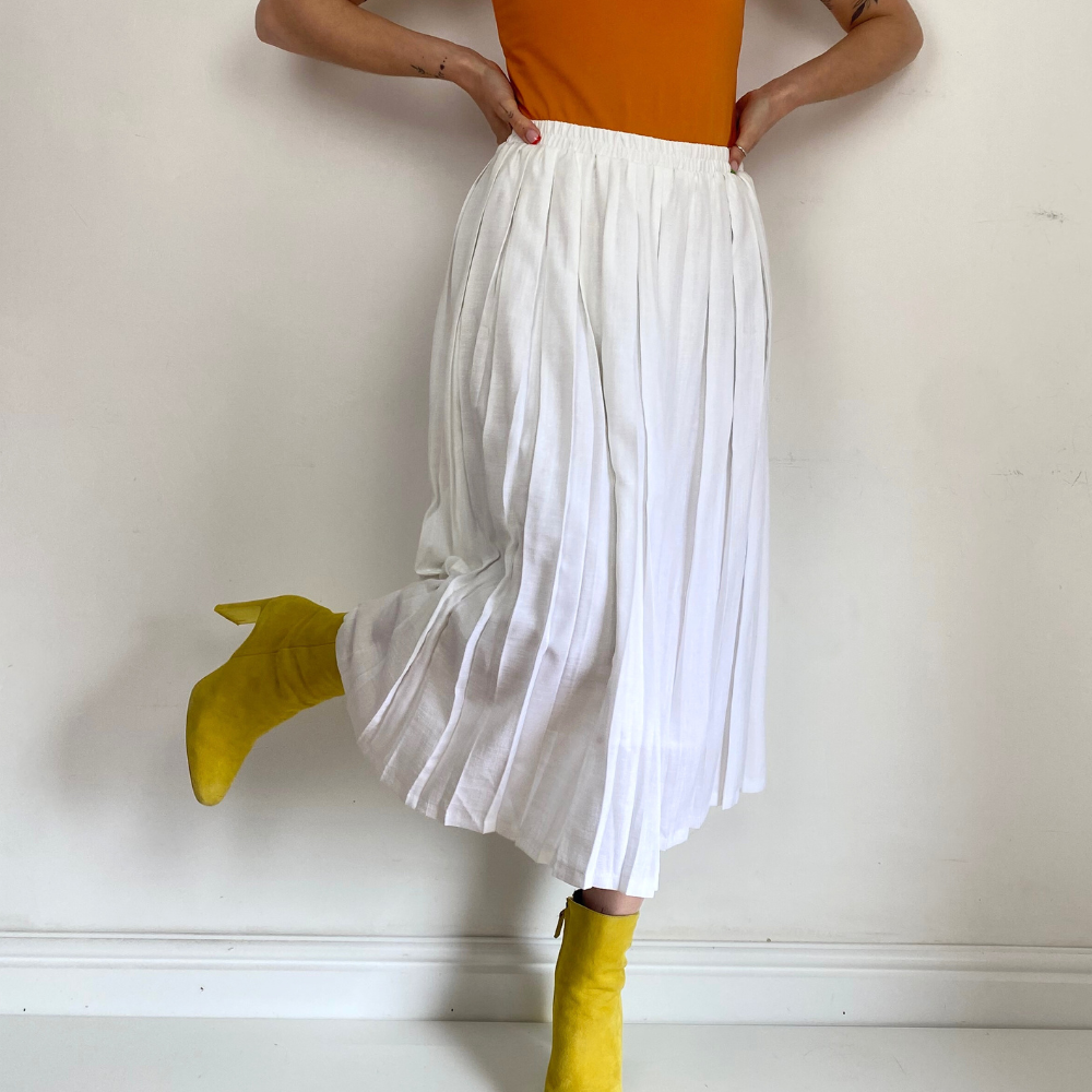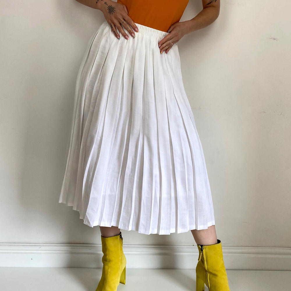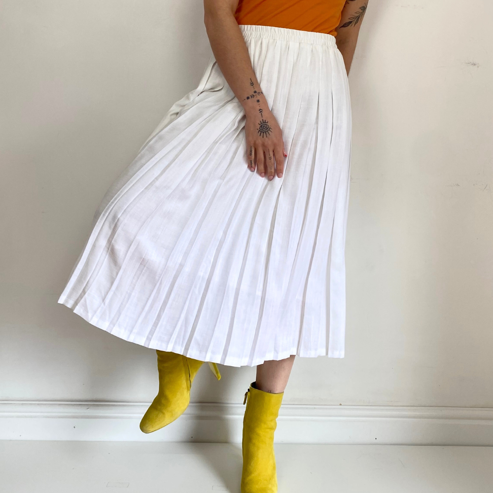 - Pleated white skirt