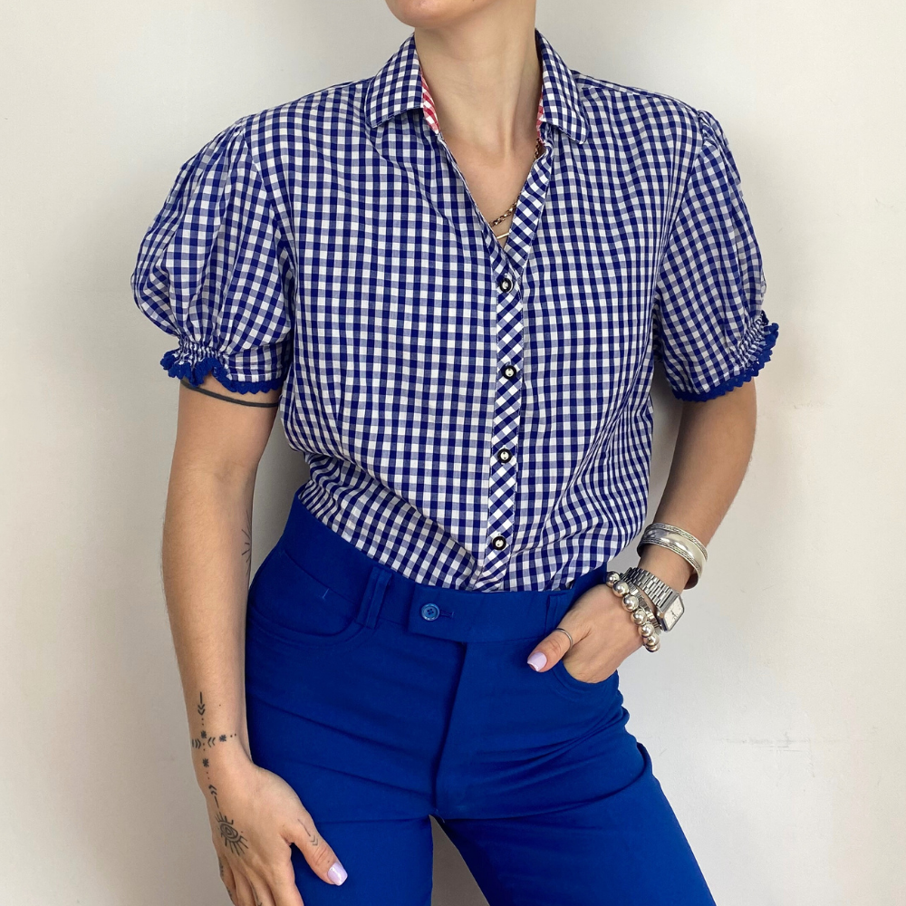 Hand selected vintage top options from online Irish Vintage brand And Again. Ethically sourced from around Europe. Carefully hand picked for their great quality, styling versatility & interesting details. Wide range of vintage tops in both casual & dressy styles; vibrant prints, solid colours, a big variety of styles & sizes.