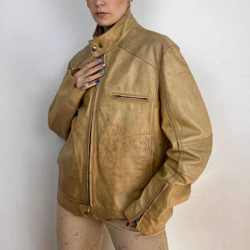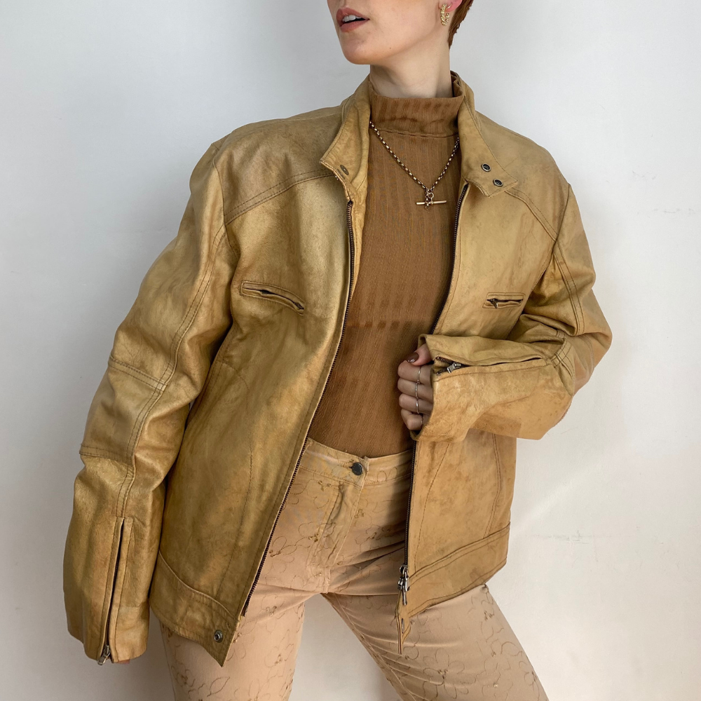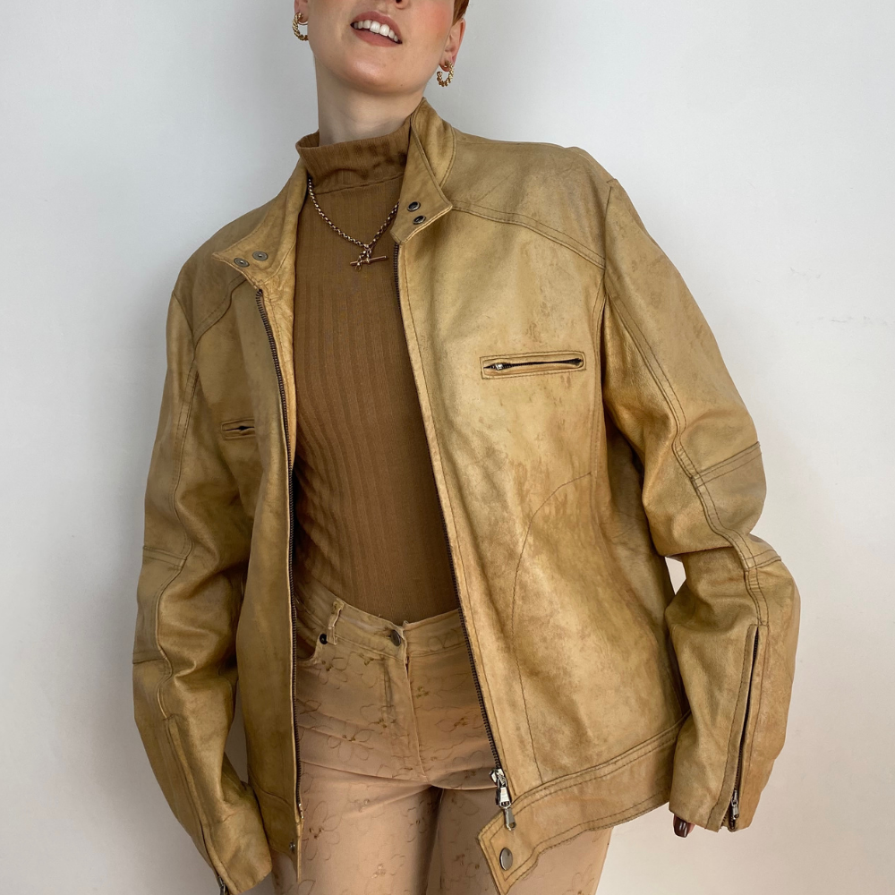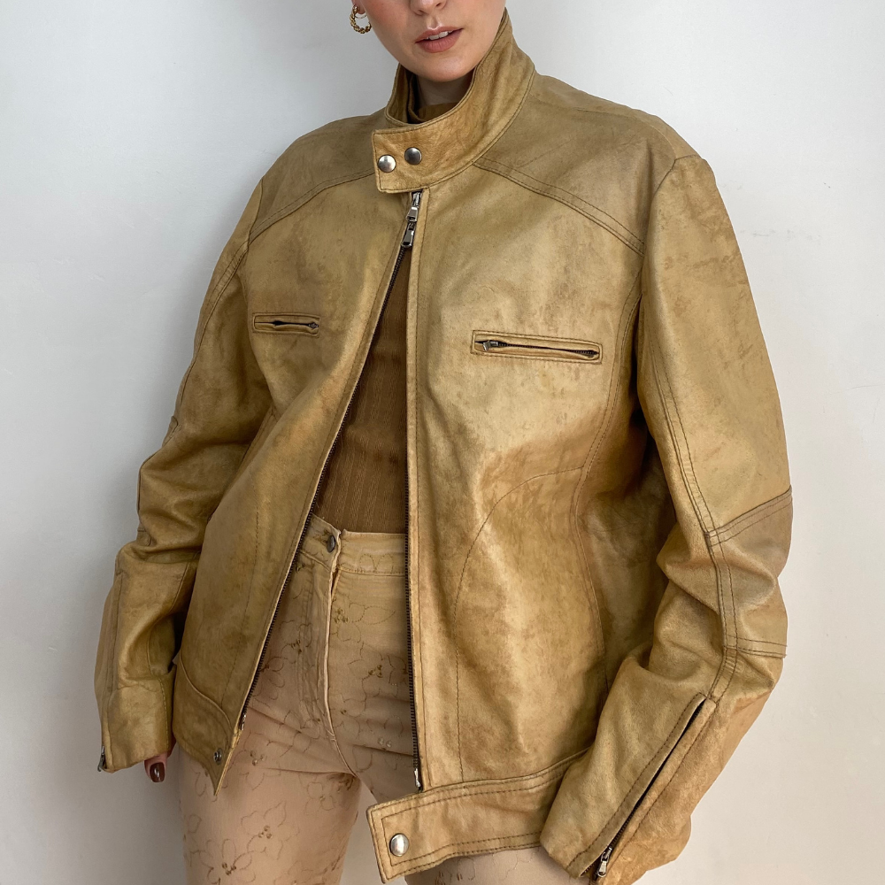 - Camel leather jacket